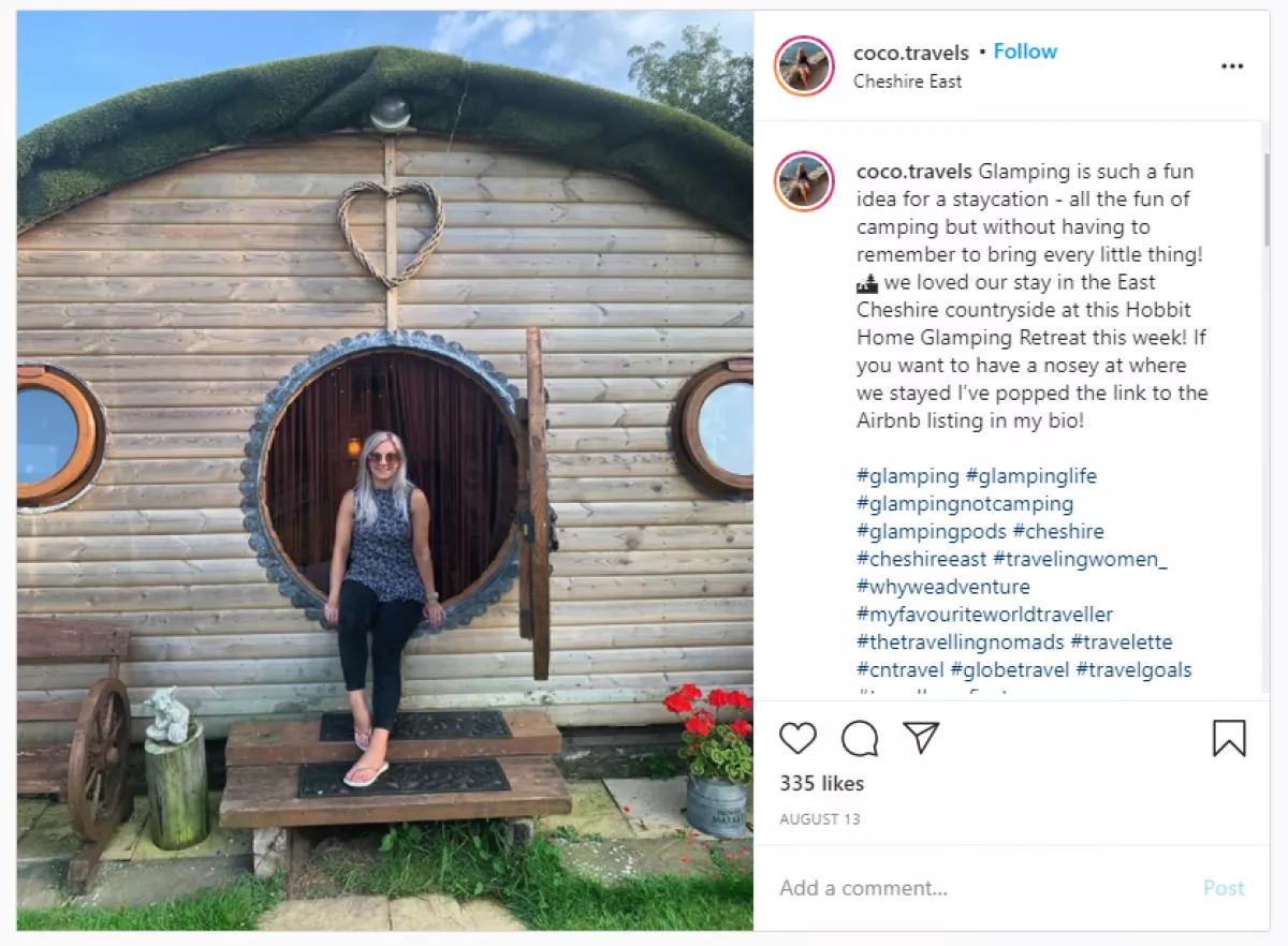 Les Staycations sont également très utiles pour réinjecter de l’argent dans l’économie de votre pays et soutenir les entreprises locales. La semaine dernière, je me suis dirigé vers Cheshire où je n’étais jamais allé auparavant et j'ai passé la nuit à glamper dans une capsule en bois Hobbit Home. C'était une façon vraiment originale et différente de rester et lors de notre pause, nous avons passé une journée à explorer la ville de Chester, chargée d'histoire, et une journée de randonnée à travers la campagne du Cheshire, donc la pause était très variée. Je ne saurais trop recommander une staycation!